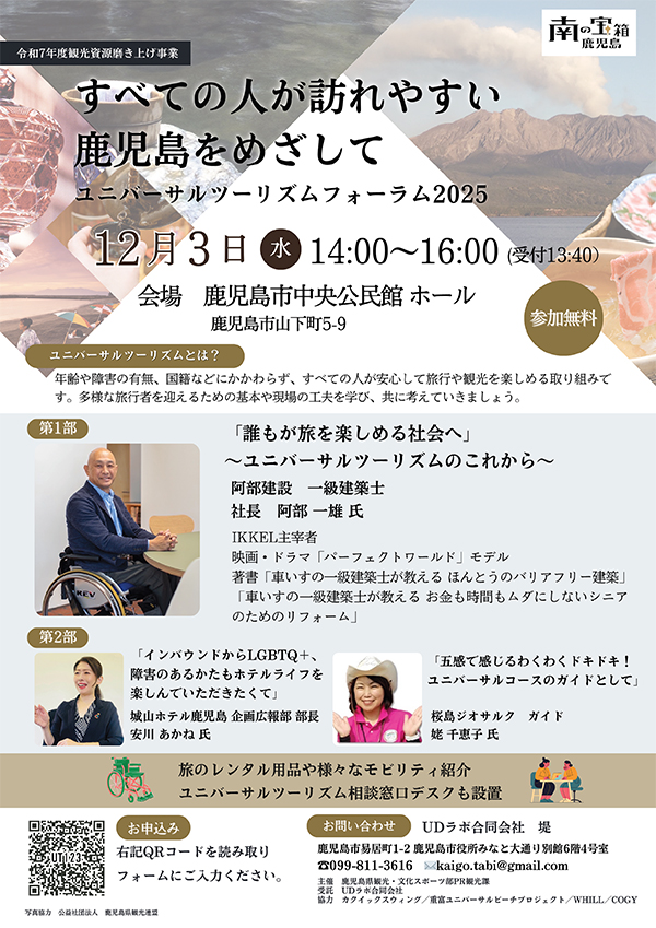 そして今回、鹿児島県にて「すべての人が訪れやすい鹿児島をめざして」と題したフォーラムを開催します!