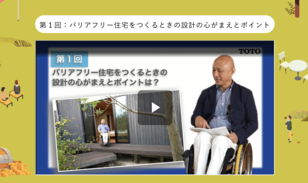 「安心して過ごせる住環境づくり、水まわり提案」をテーマとした「国際福祉機器展 WEB2021/TOTOオンデマンド動画」に車いす建築士の立場で動画配信されています。